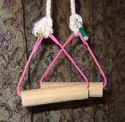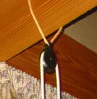 C かもいにひもを掛け、滑車を吊るします。この滑車に4mのロープを通します。準備OKです。