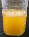 2 ある程度冷えたら、次に廃油660ccをペットボトルに入れます。今度はふたをして、10分間くらいふります。