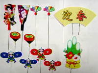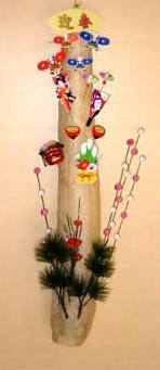 正月のお飾りを学校に掲示したいと考え、今回はへちまを使用してみました。店頭には美しい飾りが並びますが、季節的なものは高価になります。しかし、じっとながめて10分間、アイデアだけは頭の中に入れて帰宅します。急いでメモをして、必要な物をホームページで検索します。気に入ったものがあれば、直ちに取り込みます。羽子板・羽・コマ・タコ・門松など正月にちなんだ物を、プリンターで印刷しました。その後ハサミで切り、手芸用の針金をボンドでつけました。