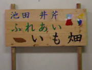井芹中にはイモ畑があります。池田小学校の一年生と、本校の一年生が仲良くイモ植えをしました。学級を示す立札は完成したのですが、イモ担当のH先生から「先生、フェンスに大きな看板を掲げたいのです。」と注文がありました。頼まれてイヤとは言えず、校長室で完成しました。