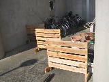 衝立(ついたて)はお座敷とか、炉端などの仕切りにも利用します。この杉板を利用して作った衝立は、縦120cm、横150cmほどあります。平成16年の11月中旬に完成しました。板がたくさん手に入りましたので、五脚できたのです。このうち三つは、農具倉庫の目隠しにしました。廃棄された自転車や古いプランターが積んでありますので、通学路から奥が見えないようにしたのです。