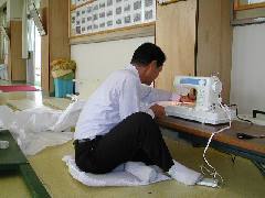 子どももびっくり、ミシンを学習センターに持ち込み、長さ6m・幅90cmの布を縫い始めました。この状態が一週間続きました。横断幕だけでなく、入退場門に掲げる三色の布も作ったためです。調子に乗りすぎて、孟宗竹に巻きつける布も縫いました。「後ろ姿の教育」に効果が現れ、やがてI先生も手伝うになりました。