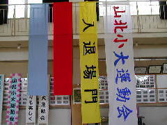 いよいよ9月30日(日)は、山北校区の町民が楽しみにしている運動会です。昨年は大きな木製の看板で、取り付けるのに大変でした。片付けても場所は取るし、準備するにも大人でなければできません。一念発起、布で作ることにしました。時間の余裕はありそうです。