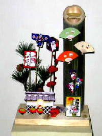 工作室にこもり、1時間ほどで完成した作品がこの写真です。松と梅の花は、市販品です。いろんな小物は、パソコンに取り込んでいる写真を印刷しました。たこ・やっこだこ・扇子・羽子板・こま・獅子頭を切り取り、竹ひごに接着しました。今回の作品のポイントは、土蔵の写真です。何となく生活をしている雰囲気になりました。安上がりの正月飾りですが、これもお気に入りになりました。