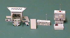 型紙から作った小道具です。テレビ・ラジカセの電化製品、そして碁盤です。碁盤の上はビーズが乗っています。御車の中には、私の似顔絵が貼ってあります。