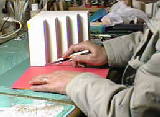 左は落花生の選考です。選考委員長は私・福井です。1袋から30取れればいいでしょう。形と色と質に合格すればOKです。不合格の豆は、食べてしまいます。でこぼこのケースに紙を貼るときは、紙を先に糊付けし、カッターナイフで切り落とした方が簡単です。しかも仕上がりはきれいです。 | ![]() |