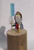 作成方法 − この猿のポイントは、腕と手にあるようです。顔が猿に見えるように、赤のマジックで塗りました。紫の和紙でほおかむりをしています。ところで、実物は両足を前に投げ出しています。足をどのように表現するかが、今後の課題です。