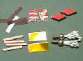 ▽和紙の畳の台・和紙の屏風・和紙の腕・スコップの柄になる竹串 ▽大、中、小のスパンコール各種 |