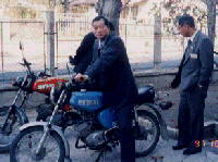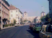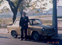 | 校舎の前に止めてあったバイクです。カブ号の感じです。ハンガリーは寒いので、バイクは少ないようです。車と記念撮影です。このタイプが一番多かったのですが、型も古くソ連時代のものかもしれません。日本ではかえって珍しく思われるでしょう。 バールポルタ市の街のようすです。大きな街ではありません。いつも石炭の燃えるにおいがしていました。 |