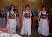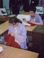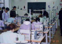 | 男女のペアーは踊りも見せてくれました。年齢的には17,18歳ですから美しいときかもしれません。服飾関係の授業は20人のクラスです。実習も見ましたが、こちらは12人です。全員が電動ミシンで洋服を製作していました。(上と右下の写真) この学校では、卒業試験があります。国語、数学、外国語、歴史と後一つの選択教科の合計5つの試験になります。大学進学をする人は、入学試験を受けることになります。 | ||||