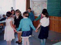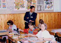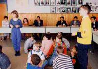 クラブ活動の時間です。エアロビクス・演劇・環境・コーラス・バスケットボール等がありました。写真は演劇のクラブです。小さいうちから自己表現の力を身に付けていくのでしょう。 | ![]() |