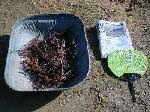 1 火をつけるための品物を準備します。杉の葉・小枝・新聞紙・うちわが必要です。この他に軍手や火バサミも必需品となります。ナイロンやゴムの手袋は、熱でとけて危険です。