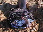 2 竹の入ったオイル缶の上に新聞紙を丸め、さらに杉の葉や小枝を乗せます。小枝はすこし多めに乗せてください。これは竹に確実に着火させるためです。余分に小枝は準備しておけば安心です。割りばしなども利用できます。