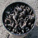 右の写真は、オイル缶から取り出した竹炭全体です。きれいによくできた竹炭だけを利用しましょう。缶に入れた竹の三分の二が完成していれば、よくできたと思えばいいのです。何事も挑戦です。