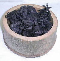 きれいな松かさの炭が完成しました。学校の竹林から孟宗竹を切り出し、受け皿にしました。この実験で分かったことは二つあります。一つはこの炭はこわれやすく、乱暴に扱えません。もう一つは、松かさが閉じていても、熱を与えると開いた状態になるということです。オイル缶の深さは30cmですから、お茶の缶などを利用すればもう少し大きな別の物を入れて実験できそうです。