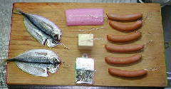 現在、チーズ・ウィンナーソーセージ・かまぼこ・ちくわ・魚肉ソーセージ・アジの開きを燻製にしています。元々このままでも食べられる食材ですから、失敗はありません。香りが付かなければ、暖めただけですが。