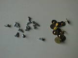 数字が見えるように大きめの写真にしました。これも10個ずつ100回振ったものです。4クラスの結果をそれぞれ示しました。ボタンなどは、生徒の予想と逆の結果です。実験する前によそうさせることがポイントです。 物は重心が下になるように安定すると思います。王冠、画鋲、ペン先、アルミ鋲などがそうです。 |