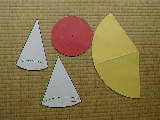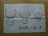 | 円錐はなかなか考えにくいですね。展開図と立体図の関係がつかみにくいからでしょう。扇形の中心角と底面の半径が比例していることに気づいてほしいと思います。丁寧に指導していくと、一問解くのに一時間かかることもあります。 | ||||