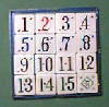 | 1878年、サム・ロイドが売り出しました。右の写真で14と15だけを入れ替えた状態で元に戻せたら賞金を出すということでした。しかし、正解はないということでした。 | |