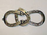馬蹄形の知恵の輪になっています。中の馬蹄をはずすパズルです。以前は簡単にできましたが、記憶力もなくなり思考力も定かでなく、困ったものです。実によくできているパズルだと思います。名前は「手錠パズル」