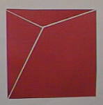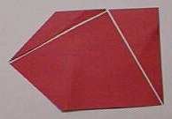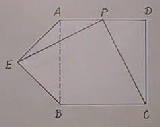まず正方形ABCDを作図します。次に辺ABを底辺とする直角二等辺三角形AEBを作図します。辺ADの中点Pを取り、線分PEとPCを引きます。切断の線は、PEとPCの二本だけです。簡単な作図ですから、作って楽しんでください。 |