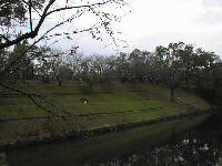 熊本城には空壕が多いのですが、ここは水壕になっています。熊本城は西の方角を正面に設計されています。