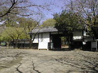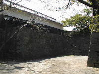 備前堀の横から入る門です。行幸坂を登らずにいけるので、一番手前にある入口ということになります。この門はもともと加藤神社の鳥居のところに建っていました。そこには旧藩時代に櫨方会所という役所があり、その役所の入口にあったので櫨方門と呼ばれました。形式は長屋門です。