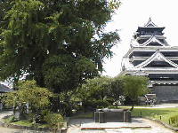 上の写真は、加藤清正が植えたと伝えられる大きなイチョウの木です。西南の役で焼け残りましたが、再び芽をふき、生長したということです。実は平成11年10月6日の熊日新聞の記事に、人吉市の白木神社のイチョウの木を平成6年に伐採したが、再び新芽が出たというのがありました。ですから、この木の再生も事実だと思います。