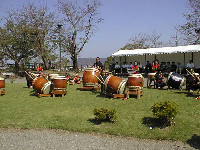 今年(平成11年)のお城祭では、ここ本丸でもいろいろな催し物がありました。写真は、太鼓の演奏です。日本の伝統文化もすばらしいと思ったものです。