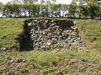 右下の写真は、石垣の周辺の土が取り除かれていたので、撮影しました。石垣の内部はどうなっているのだろうかと考えていましたので、そばに寄って観察しました。にぎりこぶしの大きさの石がびっしりつめられていました。これは砕いた石ではなく、川の下流の石のように丸みをおびていました。