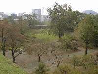 小中学生が写生大会を行うとき、集合場所に指定するのがここ飯田丸です。備前堀の東になります。一部樹木もありますが、広い敷地となっています。竹の丸と本丸の中間地点ですし、観光客が見学する場所でもありません。