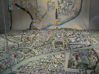 いづれもメモをとっていないので、詳しい説明ができません。写真は江戸時代の絵地図を元に復元された城下町の模型だと思います。お城は西を向いていましたので、新町を中心に発展していたと考えられます。白川から東の方角はあまり家はなかったでしょう。