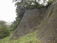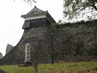 細川家の家老・長岡監物が櫓を築き、北方の守りを固めていました。そこで、この一帯を監物台と呼んでいます。ここの石垣は高さがあり、美しい曲線を見せています。