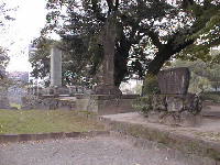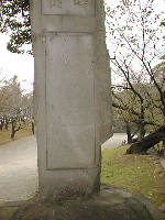 行幸橋を渡ってすぐ右手に、記念碑が三つ建っています。中央は西南の役で活躍した「谷村計介」の業績を称える碑です。もう一つも西南の役に関する碑のようです。一番奥のかなり大きな碑は、昭和35年に完成した天守閣の記念碑です。