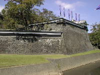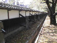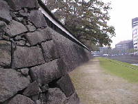 戦のときはここが最も侵入しやすいようですが、坪井川が天然の濠になり、以前は塀に銃眼もあったそうです。修復のとき、銃眼の間隔が分からず、土壁だけになっているという話を聞いたことがあります。写真は、お城の内部から見たものです。