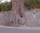 ここに掲載した写真は、主に濠を中心としています。石を押しつぶしたり、抱え込んだりしています。二の丸売店の裏の石垣はすでに丸くふくらんでいます。木の根が土の中で生長したためでしょう。