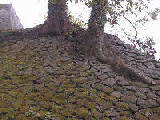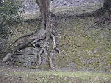 ここに掲載した写真は、主に濠を中心としています。石を押しつぶしたり、抱え込んだりしています。二の丸売店の裏の石垣はすでに丸くふくらんでいます。木の根が土の中で生長したためでしょう。
