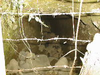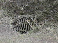 備前堀と頬当御門の間に、もう一つからぼりがあります。どんなに雨が降っても水がたまりません。そこでからぼりに行き、下に降りました。すると、穴がありました。中には入れないようにしてありましたが、けっこう大きな穴です。ここから雨水は備前堀へ流れていたのです。納得。