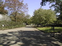 竹の丸は本丸の中で一番低い郭(くるわ)で、南側には242mの長塀があります。入口は二つあり、東側は須戸口門になり、西側は櫨方門になります。写真は飯田丸から撮影したものです。