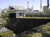 写真は須戸口門の上に位置する「平御櫓」です。ここに登ると、熊本市庁舎がよく見えます。
