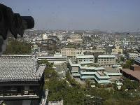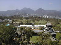 写真は天守閣から北の方角を撮影したもので、KKRホテルが見えます。このページでは、市街地を撮影したものを紹介しています。次の「天守閣展望2」 では、城内を紹介しています。