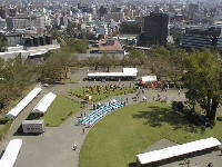 天守閣前の広場、本丸です。東側になります。お城祭りが開催されていたので、ベンチやテントが見えます。
