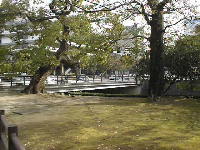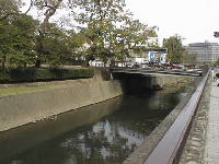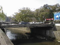 市役所前の坪井川に架けられた橋です。県道四方寄熊本線の起点でした。昔は城下と城内を結ぶ橋で、土橋でした。左岸には舟着き場があって、貢米はここから荷揚げされ、お城の蔵に運ばれました。