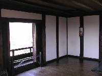 さすがに歴史を感じます。小西行長の時代ですから、16世紀の終わりごろの建物になります。全体的に暗く感じますが、照明も控えめですし、板も黒ずんでいるからでしょう。国指定重要文化財です。10畳くらいの部屋が横につながり、機能的です。