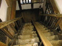 勾配が急な階段です。手すりがなければ、後ろ向きにおりたことでしょう。
