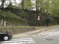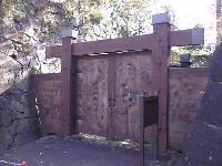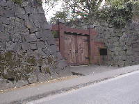 現在の門は、市政100周年を記念して復元されたものです。門の反対側は、植物園に入らなければ見えません。この門の右側に「百間石垣」があります。次のページをご覧ください。
