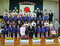 晴れの入学式・新入生は19名。「子どもは地域の宝」 入学式終了後の記念写真を掲載しました。来賓の皆様を多数お招きして、4月9日11時開式です。例年より10人ほど少ない新入生の数でした。卒業生が40名でしたから、21名の児童数減となります。全校児童数は169名、PTA戸数は119となっています。「子どもは地域の宝」ですから、大切に育てたいと思います。一年生は学校に慣れること、基本的な生活習慣を身につけること、登下校の安全を守ることが最初の勉強です。 |