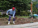 年の神水源公園に、センニチコウを植えました。 以前から気になっていたのが、年の神公園三叉路の花壇です。学校の入口に近く、雑草が生い茂っていました。ここをスコップで掘り起こし、草の根をすべて取り除きました。その後センニチコウの花苗二百本ほどを定植して、何とか花壇らしくしました。作業中は目立つらしく、トラクターで手伝おうとした方、ねぎらいの声をかける方、果物を届ける方がいて、地域の方の優しさに触れました。花が咲くのが楽しみです。 |