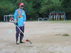 | やっと朝夕が涼しくなりましたが、今年の夏は猛暑続きでした。おまけに雨も降らず、何をしても疲れる日々の連続でした。学校へはできるだけ出勤し、校庭の草取りに励みました。山北小へ来て、こんなに草取りしたのは初めてです。一学期終業式の話の中で、夏休みに校庭の草をなくしてしまうと、子どもたちに約束しました。何とか約束を果たし、ホッとしているところです。如雨露で水をまいて土を湿らせ、刈り払い機で除草しました。雨が降れば耕運機で耕し、掘り起こされた草をあつめました。その結果、運動場はきれいになりました。夏の作業は、朝が一番適しています。そんなことを実感した夏休みでした。 | ![]() |
