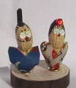 こんな人形を作ってもらいます。 ドキドキワクワクの菓子博です。グランメッセ熊本では11月3日と17日の二日間、参加者と一緒に人形作りをします。午後1時と3時に出番となっていますので、写真の人形を予定しています。40人の予定ですが、親子連れの場合は母親も作ることも予想されますので、100人分の素材を準備しました。木材のクイを3cm幅にして、のこぎりで100個切るのも大変でした。せっかくの機会ですから、18日の講話集会で落花生の話をしました。 |
